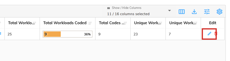 | Unique Workloads Coded | Count of each Unique Workloads (see above) where one or more codes have been applied. | No |