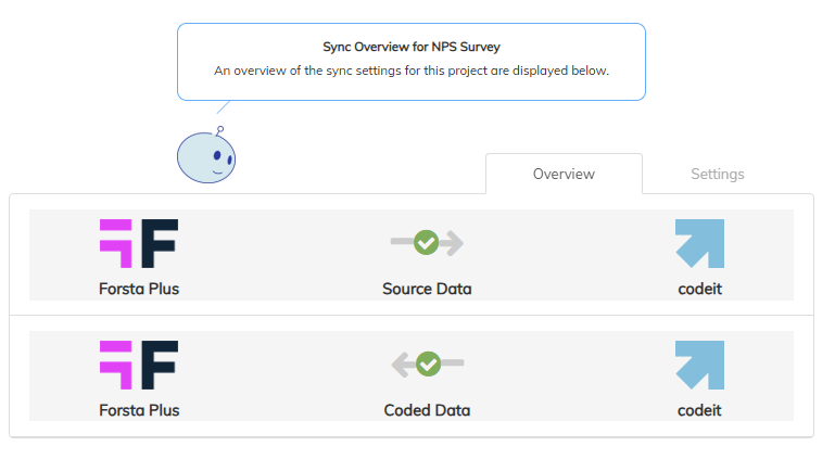 | Connect | Connect to your Forsta Plus instance by adding a Data Link in codeit. This is a one-time task - once your Data Link is created you can use it to add any of your Forsta Plus surveys to codeit. | Details |